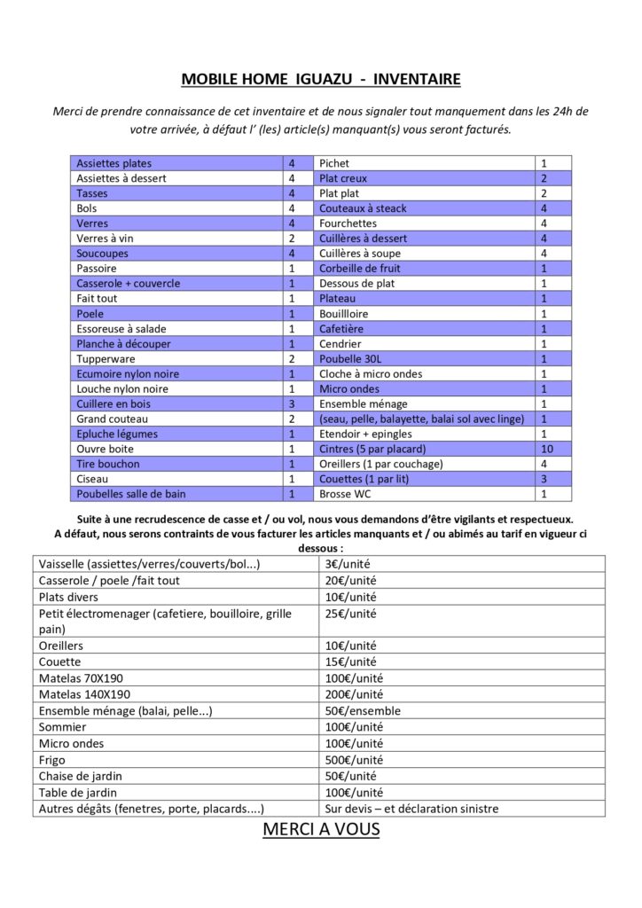 Situé proche piscine et espace de jeux, L’Iguazu se compose d’un salon avec espace cuisine totalement équipé (vaisselle, frigo, micro ondes, plaque gaz, cafetière, bouilloire…..), 2 chambres (1 lit double 140×190 et 2 lits simples 70×190), salle de bain (douche, vasque), wc séparé. La terrasse extérieure se compose d’un salon de jardin (table + chaises).